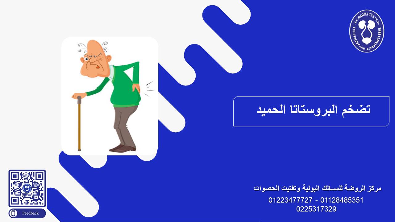 تضخم البروستاتا الحميد (BPH) مشكلة صحية تصبح أكثر شيوعًا مع التقدم في العمر. ويُطلق عليها أيضًا البروستاتا المتضخمة. البروستاتا غدة صغيرة تساعد على تكوين السائل المنوي. وتوجد تحت المثانة مباشرةً، وغالبًا ما يزداد حجمها كلما تقدم بك العمر. يمكن أن يؤدي تضخم البروستاتا إلى أعراض قد تزعجك، مثل إعاقة تدفق البول خارجًا من المثانة. وقد يسبب مشكلات في المثانة أو الجهاز البولي أو الكلى. يمكن للعديد من العلاجات المساعدة في علاج تضخم البروستاتا الحميد. وتشمل هذه العلاجات الأدوية والجراحة والإجراءات الأخرى. تتضمَّن الأعراض الشائعة لتضخم البروستاتا الحميد الآتي: الحاجة المتكررة أو الملحة إلى التبول. التبول بمعدل أكبر أثناء الليل. صعوبة في البدء في التبول. تدفق بول ضعيف أو تدفق يتوقف ويبدأ. التقطير في نهاية التبول. عدم القدرة على إفراغ المثانة بالكامل. تشمل الأعراض الأقل شيوعًا الآتي: عدوى الجهاز البولي. عدم القدرة على التبول. ظهور دم في البول. غالبًا ما تتفاقم أعراض تضخم البروستاتا الحميد ببطء. لكن أحيانًا تظل كما هي أو حتى تتحسن مع مرور الوقت. لا يحدد حجم البروستاتا دائمًا مدى خطورة الأعراض. فقد تظهر لدى بعض الأشخاص المصابين بتضخم بسيط في البروستاتا أعراض شديدة. بينما يواجه أشخاص آخرون مصابون بتضخم شديد في البروستاتا مشكلات بسيطة. وبعض الأشخاص المصابين بتضخم في البروستاتا لا تظهر عليهم أي أعراض على الإطلاق. أسباب أخرى محتملة لأعراض المسالك البولية يمكن أن تؤدي بعض المشكلات الصحية الأخرى إلى ظهور أعراض مشابهة لتلك الناتجة عن تضخم البروستاتا. وتتضمن: عدوى الجهاز البولي. التهاب البروستاتا. ضيق الإحليل، وهو الأنبوب الذي ينقل البول إلى خارج الجسم. تندّب عنق المثانة نتيجة جراحة سابقة. حصوات المثانة أو الكلى. مشكلات في الأعصاب التي تتحكم في المثانة. سرطان البروستاتا أو المثانة. قد تؤدي بعض الأدوية أيضًا إلى ظهور أعراض مشابهة لتلك الناتجة عن تضخم البروستاتا الحميد. وتتضمن: الأدوية المسكنة للألم قوية المفعول التي تُسمى العقاقير أفيونية المفعول. أدوية الزكام والحساسية. الأدوية القديمة المُستخدمة للاكتئاب التي تُسمى مضادات الاكتئاب ثلاثية الحلقات. متى تزور الطبيب تحدَّث مع الطبيب عن الأعراض التي تشعر بها، حتى لو لم تكن تزعجك. فمن المهم معرفة ما إذا كان هناك أي أسباب يمكن علاجها أم لا. ومن دون العلاج، يمكن أن تزداد احتمالات حدوث انسداد خطير في الجهاز البولي.